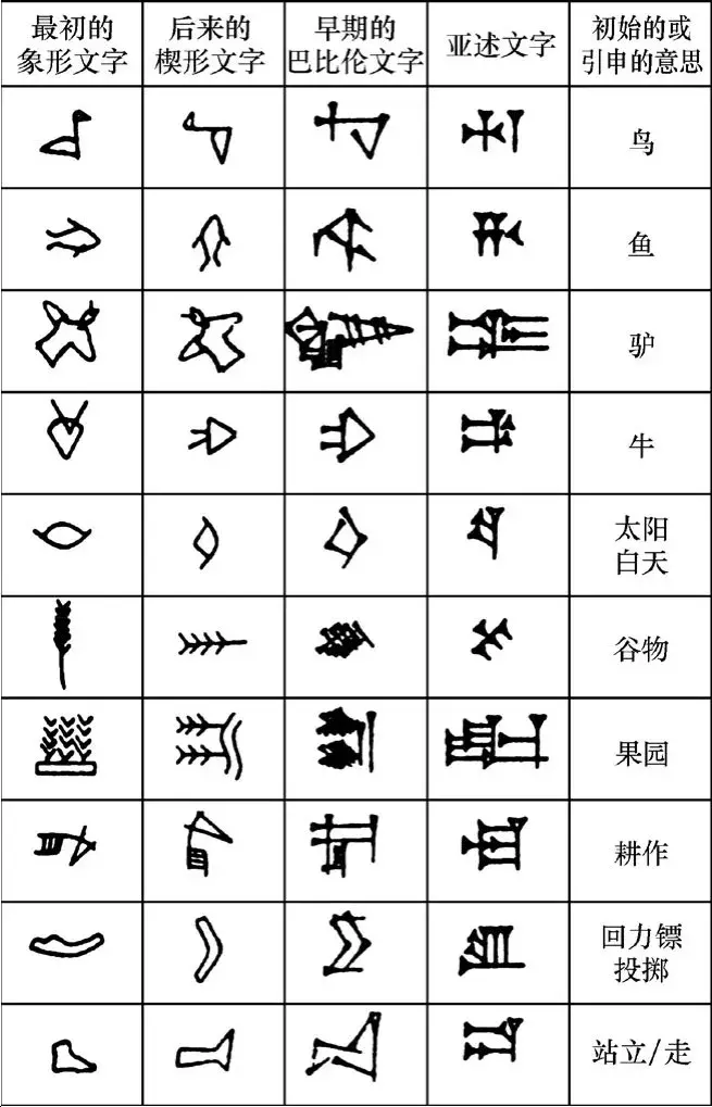 最初的楔形文字由图形符号组成,书吏用简单图形画出牛、羊、谷物、鱼以及任何需要记录的东西。不久,象形文字的书写有了固定模式,不再任由书吏凭艺术想象任意发挥。从此,文字的刻写和阅读有了统一标准,但还有一个基本问题尚待解决,即象形文字无法表达抽象概念。